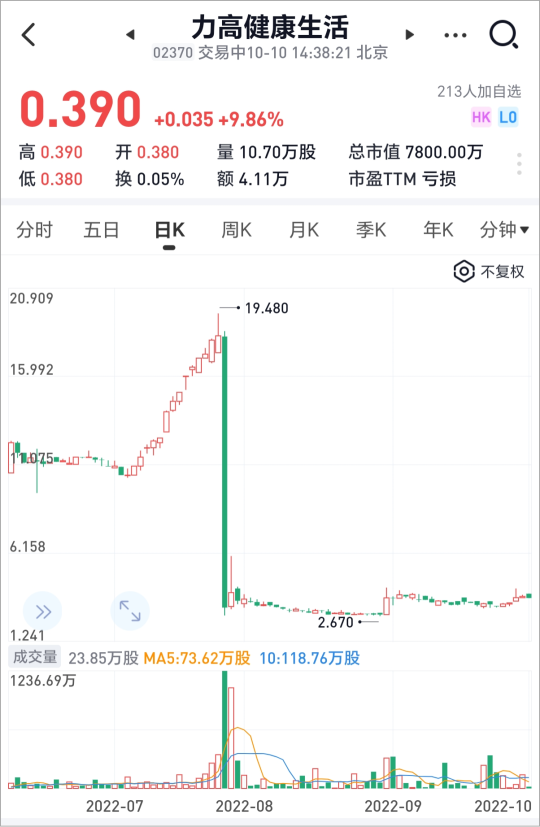 早盘从2.56港元的开盘价一度暴跌至1.31港元,最大跌幅为49.22%,尾盘收复2.55港元,单日振幅达50%,市值一度蒸发超6亿港元。