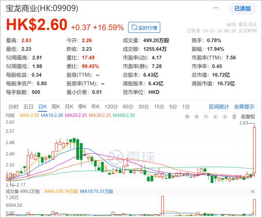 2025年10月13日盘前,宝龙商业(09909.HK)突然一纸公告将自己推向了舆论焦点。