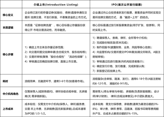 中海物业的上市方式颇为特殊——介绍上市。与常规IPO(首次公开募股)通过发行新股募资不同,介绍上市仅为现有股东提供股票流通渠道,企业本身不直接从资本市场获得资金。