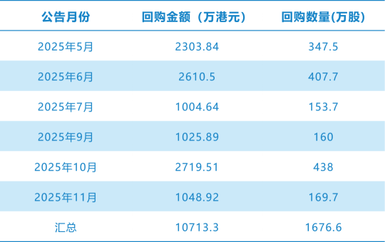 尽管上半年未宣派中期股息,但管理层年内已开展了6个月的回购行动。截至11月5日,碧桂园服务累计回购1676.6万股,耗资1.07亿港元。