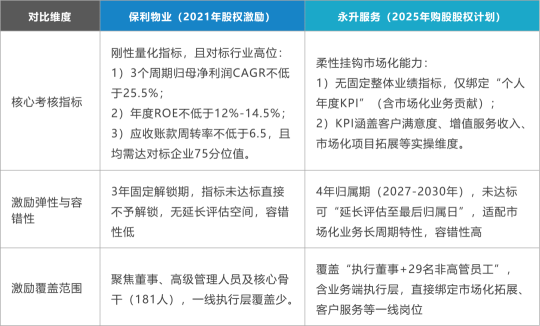 对比两者股权激励方案及业务基本面,永升服务凭借更贴合市场化逻辑的激励设计、更彻底的业务转型布局,靠市场化搏杀达成业绩目标的可能性显著更高。