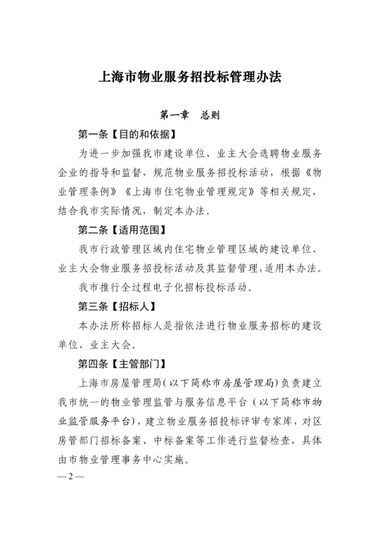 上海市房屋管理局印发《上海市物业服务招投标管理办法》,自2026年1月1日起施行至2030年12月31日,聚焦住宅物业管理区域物业服务招投标全流程规范,推行全过程电子化操作,非住宅物业招投标参照执行。