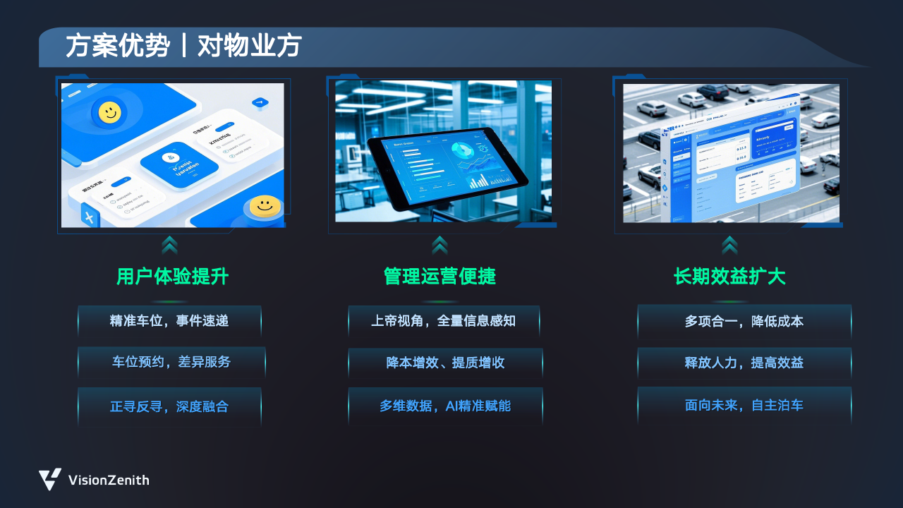 臻识科技推出的“全息车场”解决方案,是面向未来停车场智能化运营管理的创新方案,旨在通过AI视觉与全景感知技术,重塑停车场的运营效率与用户体验。当前,传统停车场普遍存在几大核心痛点:对车主而言,找车位难、寻车难、场内拥堵、通行效率低下是常态;对物业管理方来说,则面临事件响应被动、人工依赖度高、设备联动困难、数据支撑缺失等问题,导致管理成本居高不下、运营优化缺乏依据。