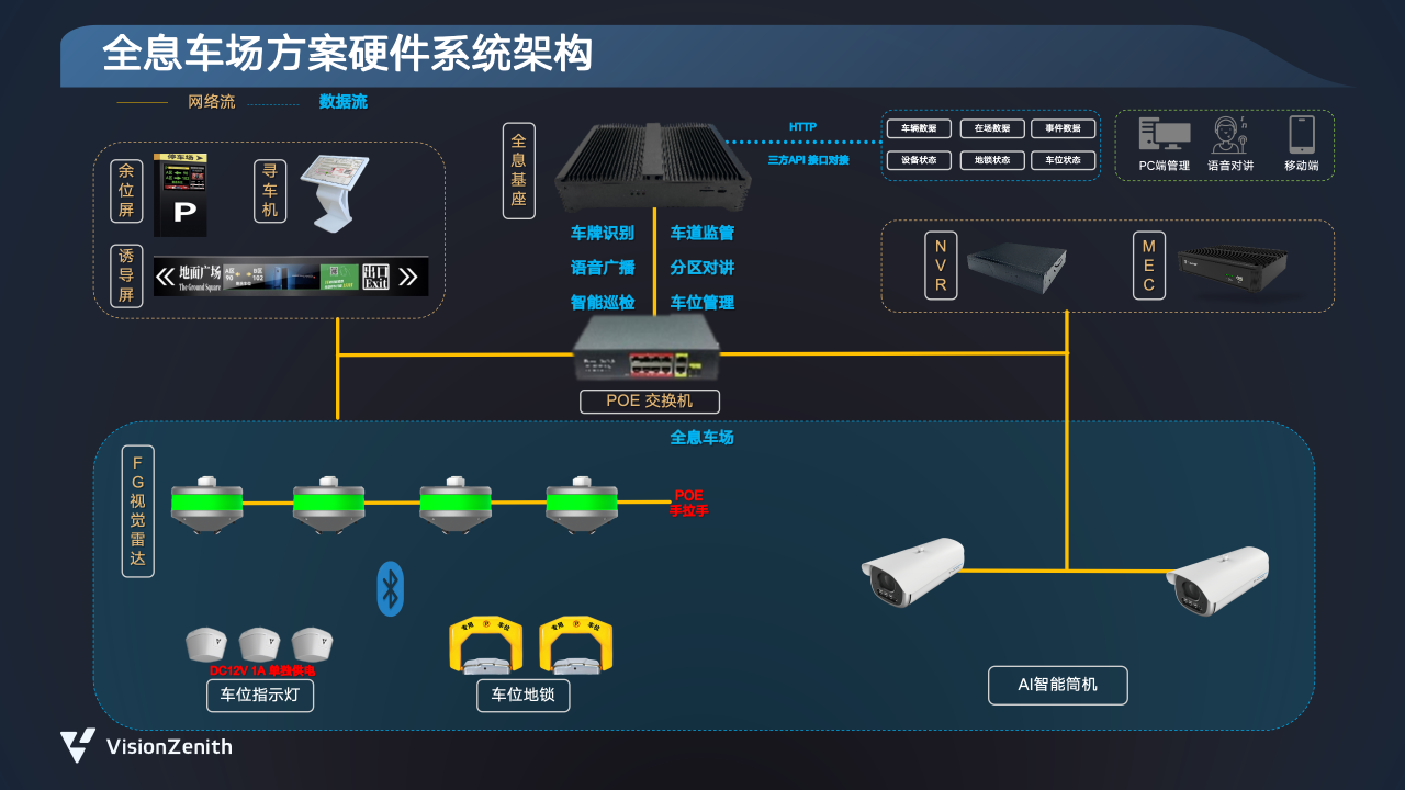 臻识科技构建了一套以“FG相机+AI智能筒机+全息基座”为核心的硬件系统架构,结合数字孪生与云平台,实现停车场360度无死角、全息全景的“上帝视角”管理