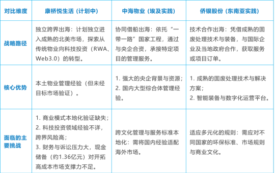 通过以上对比,清晰地揭示了三种路径的根本差异,即中海依托国家战略“背靠大树”,侨银凭借硬科技“手握利器”,而康桥悦生活目前的计划更像是“孤身闯荡”,在资源、经验和模式上都面临着未知挑战。