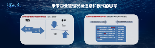 从未来的维度看,深水区是变革的方向;是新技术、新机遇和新挑战的叠加。包括FM(设施管理)、AM(资产管理)、AI(人工智能)、低碳节能、物业+养老服务等等。