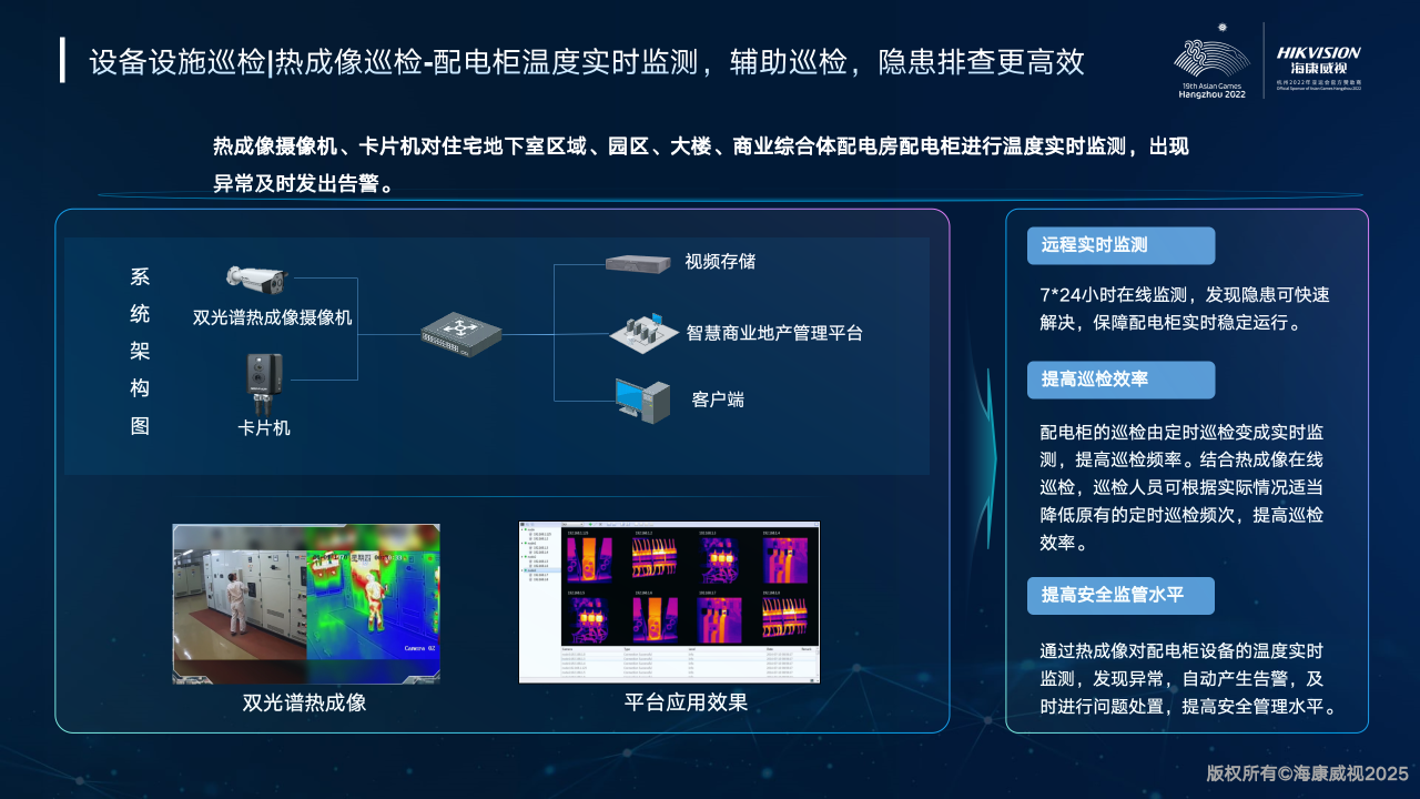 此外,针对设施设备尤其是存量旧改项目的智能化管理,我们提供了更经济、更集成的创新产品方案。例如,电梯物联网相机不仅是一台摄像机,更是一个集成了多种传感器与智能算法的综合感知终端。它能够自主监测电梯的运行状态、开关门次数、故障数据,并能智能识别电动车入梯等危险行为。这种一体化设计,降低了对原厂梯控系统的依赖,为大量老旧电梯的安全升级与数字化运维提供了高性价比的路径。同样,针对地下室、配电房等火灾高风险区域,我们推广运用广覆盖、低成本的热成像摄像机进行全天候温度监测,能够极早期发现电气线路过热或车辆电池热失控等隐蔽隐患,助力物业实现快速定位、早期干预,切实提升资产安全保障能力。