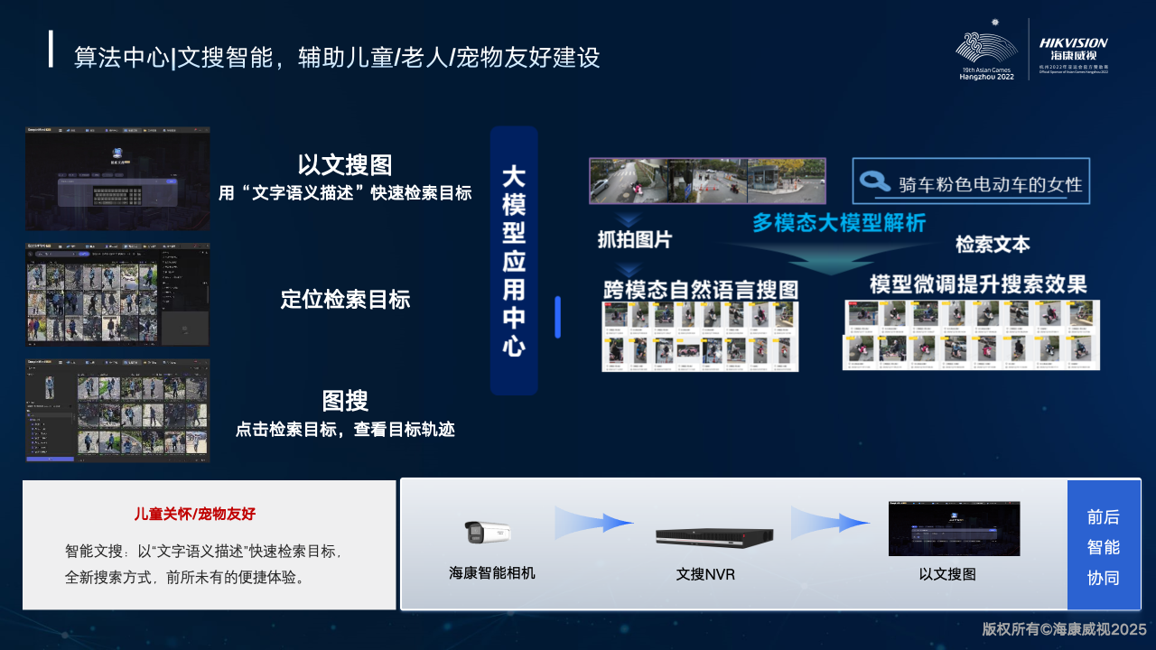 技术的生命力在于应用,而大模型技术的兴起,正为我们打开一扇通向更智能、更人性化服务的大门。其核心突破在于对复杂语义的理解能力,实现了从“以图搜图”到“以文搜万物”的跨越。在过去,我们的智能检索多局限于预设的目标,例如通过照片找人。而现在,基于语义理解,我们可以用自然语言完成过去难以想象的任务:在社区中快速寻找走失的“黄色卷毛泰迪”,在商业园区定位被借走的“绿色小推车”,甚至理解如酒店“奉茶服务”这类具有时间窗口和动作定义的复杂业务规则。我们正将这种能力注入硬件终端,例如新一代的智能门口机将支持访客或外卖员直接通过语音呼叫物业或业主,实现零接触的便捷通行。这标志着我们正从被动响应的安防管理,迈向主动理解、智能交互的服务新阶段。