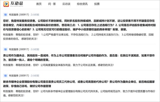 面对投资者的尖锐质询,特发服务的回应显得苍白且缺乏诚意,核心回应均为标准化的官方表述,未触及核心关切。