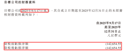 值得一提的是,注资的目标公司是2025年9月才成立,目前处于小亏状态。